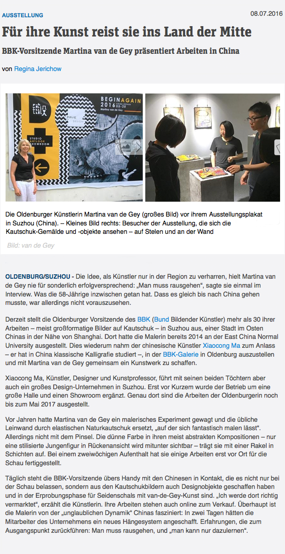 Regina Jerichow: Für ihre Kunst reist sie ins Land der Mitte, Artikel NWZ 08.07.2016