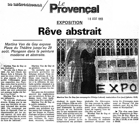 Exposition: Reve abstrait, Artikel in: Le Méridional / Le Provencial, 18.08.1993